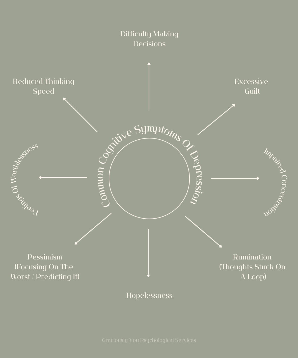 The primary symptoms of depression you may initially notice are cognitive (thought-based), emotional, physical, and behavioral. These symptoms can significantly impact your daily functioning and quality of life. Through telehealth psychology, we can assess and treat these symptoms effectively, even from a distance.